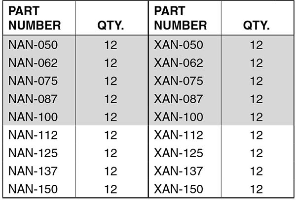 Each kit contains: 18 sizes - 9 internal, 9 external • 216 rings per box • 12 rings per size